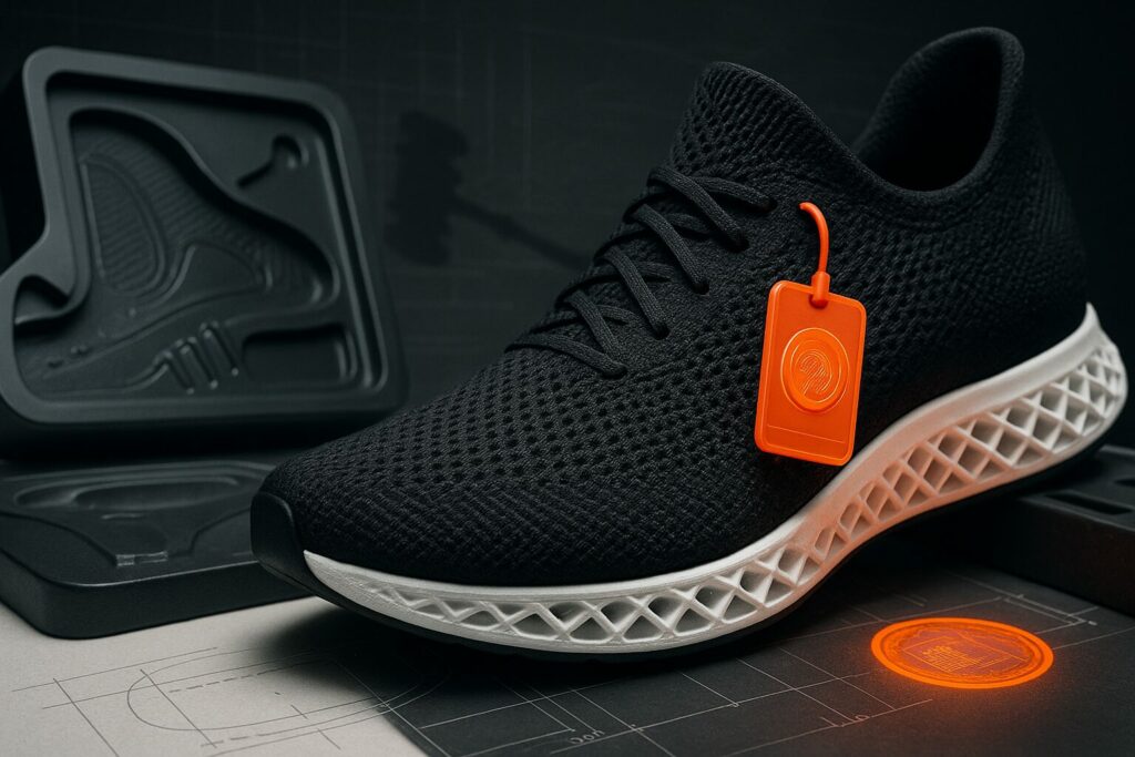 NIKEの技術開発ポートフォリオは、物理的な製品製造の自動化と、デジタル空間における顧客体験の拡張という二つの極に集中しています。物理領域においては、「Flyknit」技術が依然として中核を占めています。これは、高強度の糸を精密に制御された編み機で一体成型する技術であり、従来の裁断・縫製プロセスで発生していた材料廃棄物を大幅に削減すると同時に、労働集約的な工程を自動化するものです 5。さらに、20244月には新たな3Dプリンティング関連特許(米国特許第12,226,973号)が付与されており、デジタルデザインをファブリック上に直接印刷し、ソール構造までを一体化させる製造プロセスの実用化が進んでいます 7