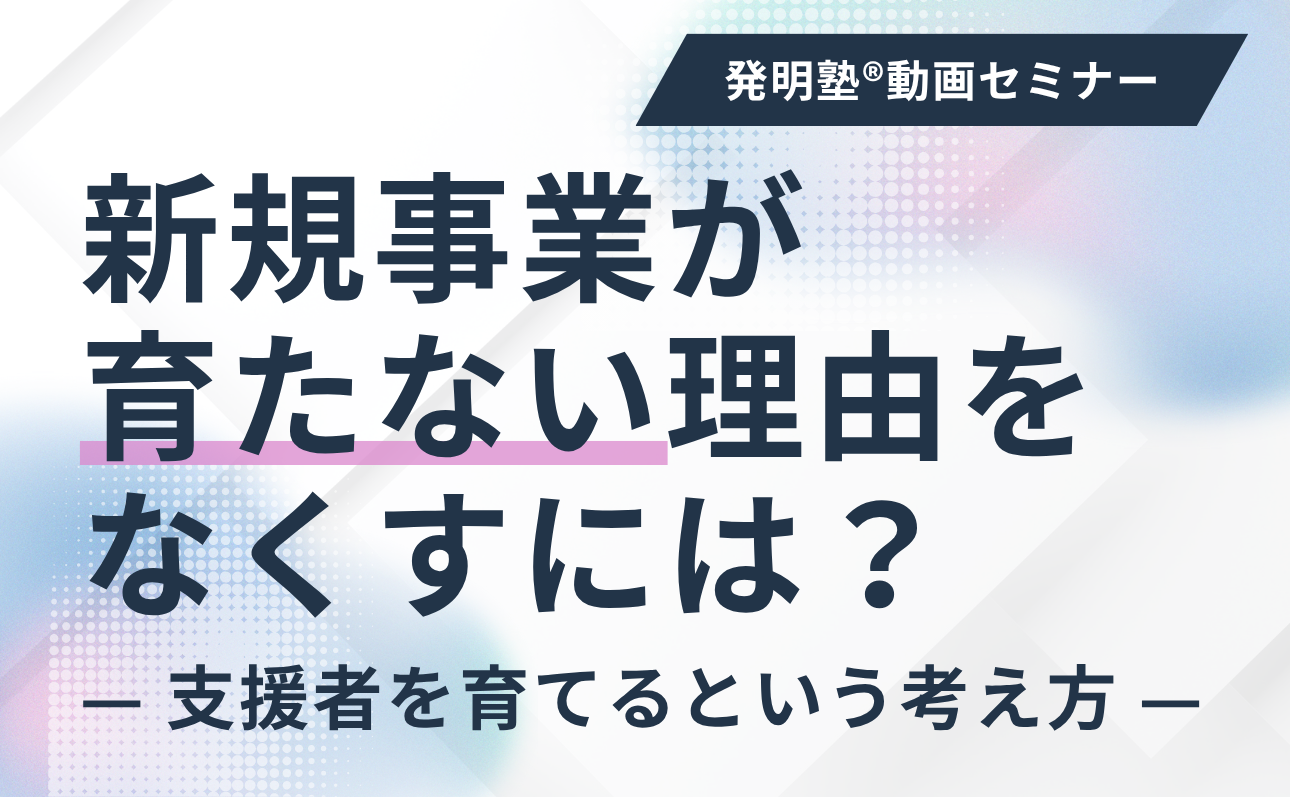 弊社のこれまでの活動と調査で明らかになった「新規事業が育たない理由」と、それを解決するための鍵となる「支援者」育成の重要性について解説します。